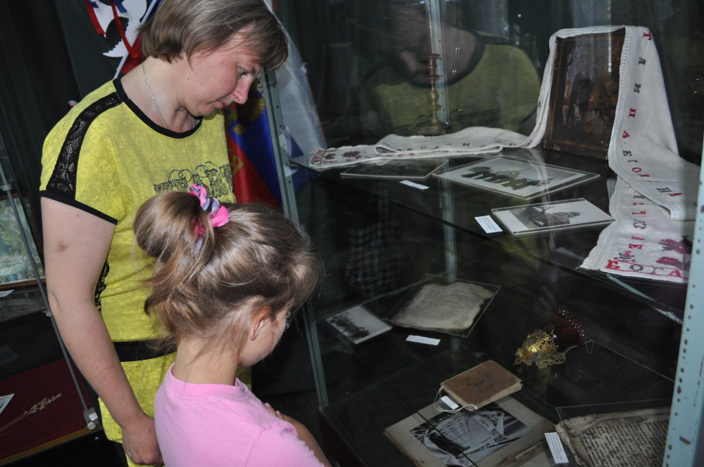 Клетнянским краеведческим музеем была организована выставка старинных икон и церковной утвари, приуроченная к 1000-летию Дня памяти великого равноапостольного князя Владимира. Она состоялась при непосредственном содействии настоятеля Свято-Никольского храма с. Мужиново иерея Александра Домбровского, который передал в дар музею четыре старинные иконы — образ Господа Вседержителя, Пресвятой Богородицы Почаевской, Иоанна Воина, Одигитрии. Еще отец Александр пожертвовал ряд старинных гравюр — Рождество Христово, Успение Богородицы, Снятие с креста, бронзовый старообрядческий крест, крестильный набор, а также страницу из акафистника 19 века с изображением святой Варвары. В музейных витринах верующие и жители поселка могут увидеть Евангелие 1834г. издания, воздухи и покровцы, старинные напрестольные подсвечники, богослужебное облачение священнослужителя, которые на период выставки предоставлены музею благочинным Клетнянского церковного округа иереем Игрем Воликовым. Экспозиция продлится до сентября, чтобы у клетнянских школьников была возможность с ней ознакомиться.