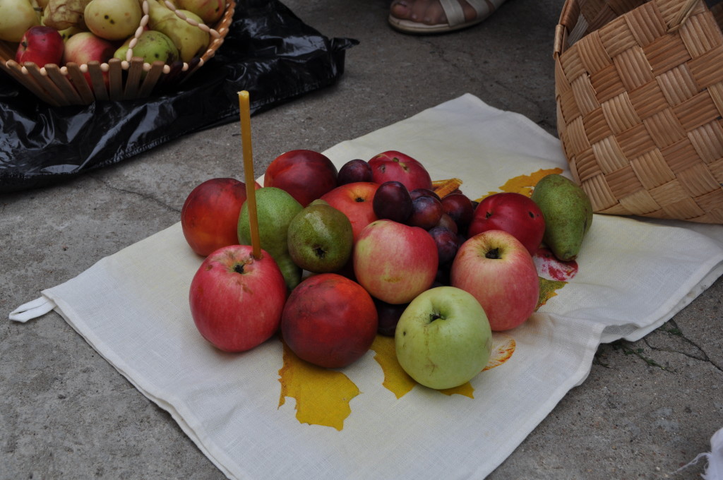 Во всех храмах Клетнянского благочиния Божественная литургия завершилась праздничным молебном с освящением плодов нового урожая. Этот день принято считать концом лета и началом горячей уборочной поры в садах и огородах. Многолюдный Свято-Владимирский храм светился радостными улыбками прихожан, которые щедро делились друг с другом принесёнными плодами. Кроме традиционных яблок можно было увидеть спелые сливы, светящийся на солнце виноград и даже оранжевые перцы. «Что Бог послал, то и принесла, — улыбнулась хозяйка переполненной корзины, — Я всему рада, всем довольна, люблю свой огород и тружусь на нем, вот Господь и наградил». Освящение плодов проходило на широком храмовом подворье. Одна из прихожанок, несущая клиросное послушание, принесла освящать огромный пакет яблок – не меньше ведра. На вопрос: «Куда Вам столько?!», улыбнулась: « Мне же всей улице раздать надо, а ещё в больницу, ну и к знакомым забегу – поздравлю с праздником».