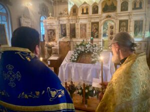 4 декабря во Владимирском храме состоялось долгожданное событие: после полугодового ремонта дом Божий распахнул двери своим прихожанам. Праздничную Божественную литургию, посвящённую Введению во храм Пресвятой Богородицы, возглавил благочинный Клетнянского церковного округа протоиерей Игорь Воликов. Он поздравил богомольцев с двойной радостью праздника: «Слава Богу, что Господь дал нам потрудиться во Славу Его и завершить не малое, а большое дело. Это сейчас мы стоим, и понятно, что ещё многое предстоит: надо и потолок сделать, и колокольню поменять, и куполок на место поставить, ещё дел и дел. Но, конечно, большое самое главное дело сделали, потому что кровля была съедена жучком, и ждать, когда она рухнет, нельзя было. Думая о том, что предстоит, я вспоминаю, сколько было сделано, кто приходил помогать, тот видел: здесь завалы были выше пояса. И теперь здесь чистота и порядок. Всё подшили, утеплили, можно зиму в тепле служить.