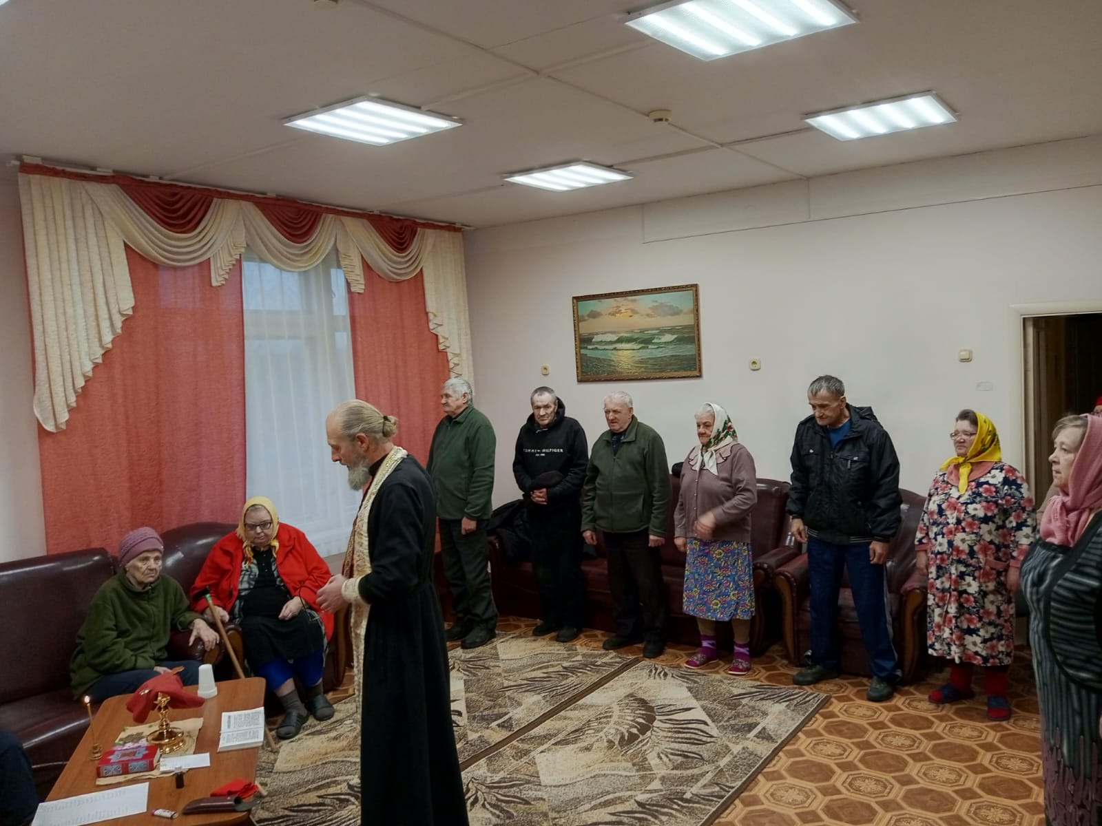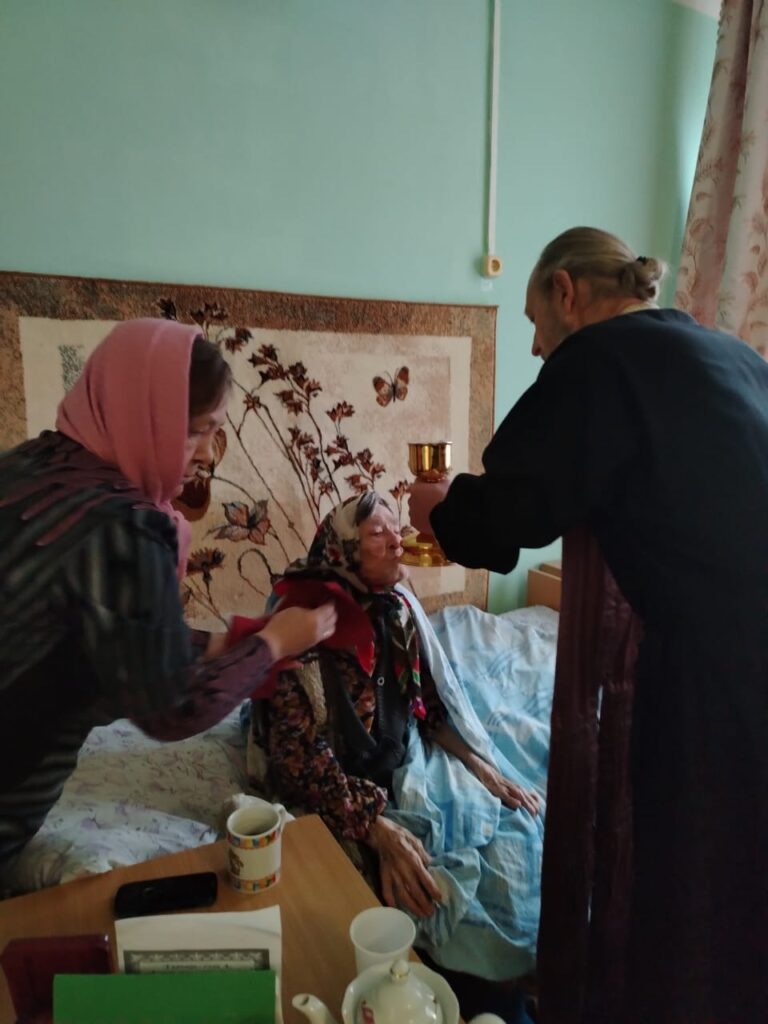После краткой молитвы священник приступил к совершению Таинства Исповеди и Причастия. С благоговением и тихой радостью проживающие принимали Святые Дары, осознавая, что через участие в Таинствах они приобщаются к самой сердцевине церковной жизни и получают духовную силу для дальнейшего пути. Многие не скрывали эмоций — для них приезд пастыря стал настоящим утешением и укреплением в вере.