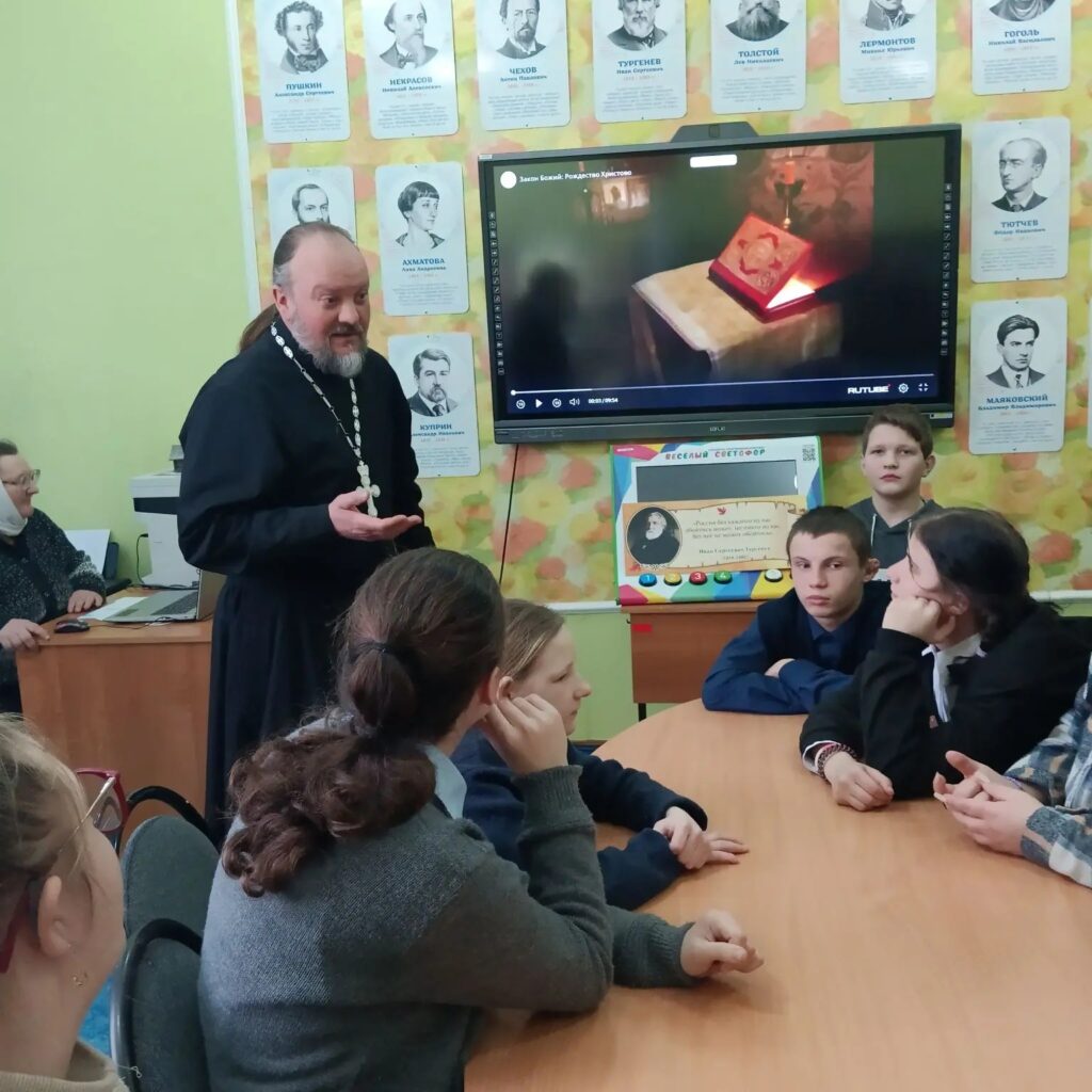 С вниманием школьники посмотрели видеофильм, посвящённый празднику. Увиденное вызвало живой интерес: ребята задавали вопросы о смысле пророчеств, о значении храма в жизни человека, о том, как сегодня можно «встретить» Христа в своей жизни. В оживлённом диалоге батюшка помогал им найти ответы, объясняя, что встреча с Богом происходит в молитве, в участии в Таинствах Церкви, в добрых делах и любви к ближним.