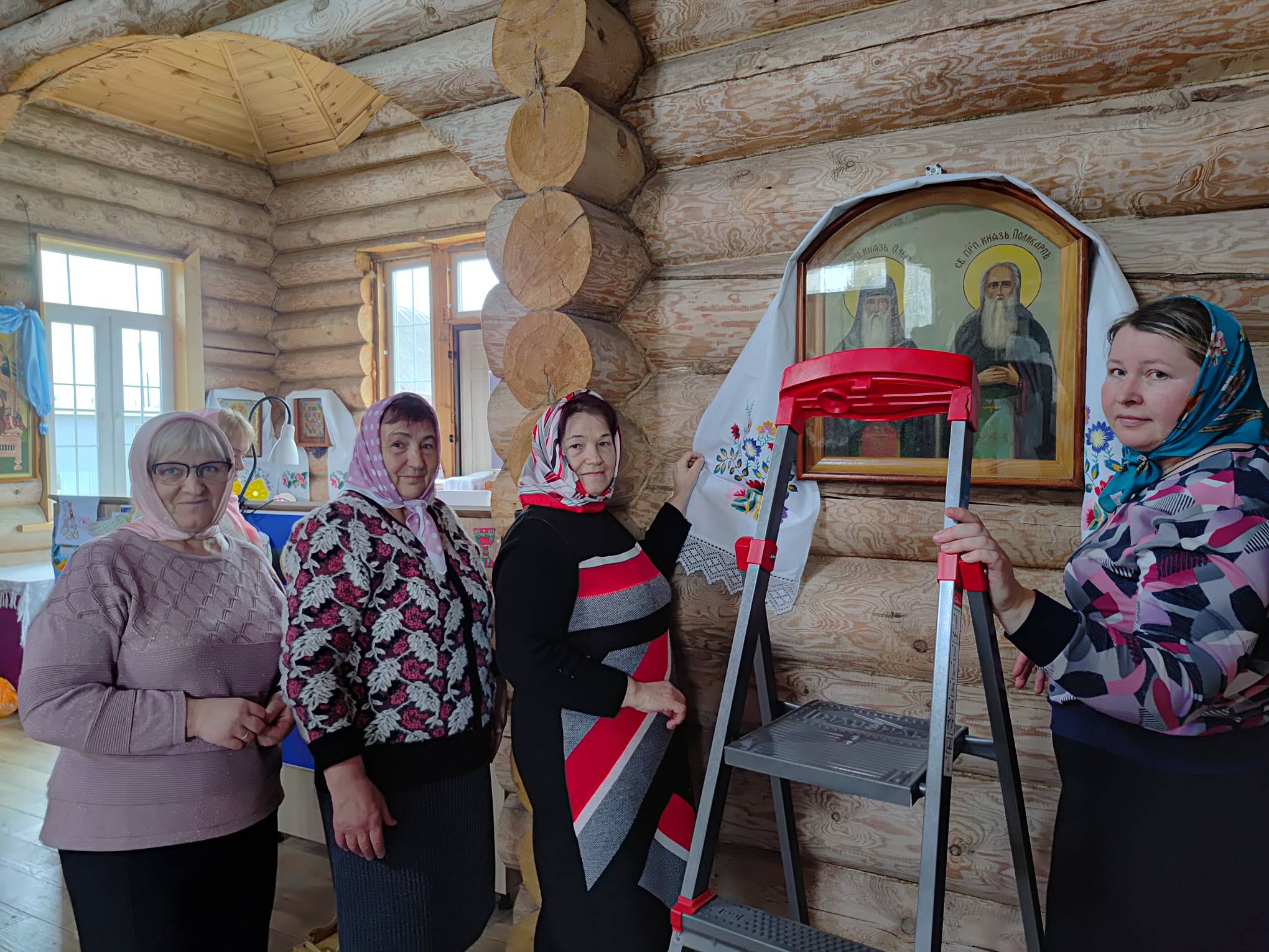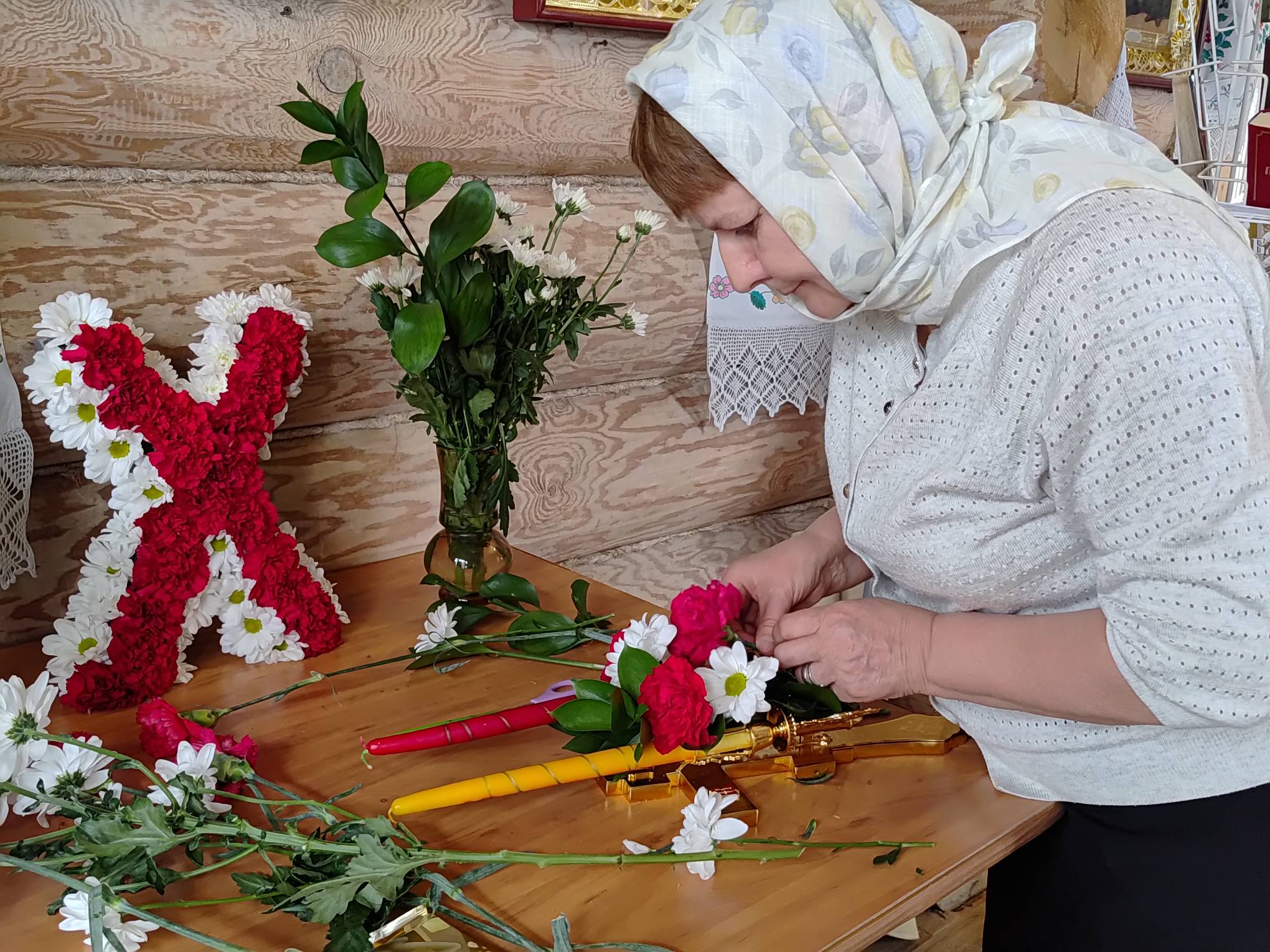 Подготовка к празднику стала настоящим проявлением живой веры и единства церковной общины. Каждый нашёл для себя дело по силам: кто-то с благоговением украшал храм живыми цветами, наполняя пространство свежестью и красотой, напоминающей о торжестве жизни над смертью. Другие с особым трепетом украшали святые иконы вышитыми рушниками — плодом кропотливого труда, вложенной души и молитвы.