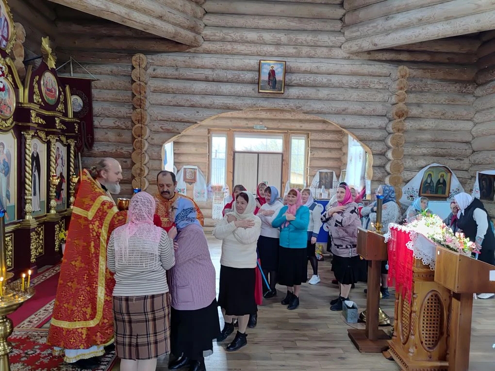 По завершении литургии состоялся крестный ход вокруг храма. С иконами, артосом в сопровождении певчих все прошли по кругу, прося у Царицы Небесной заступничества и милости. Крестный ход стал зримым выражением единства церковной общины и её упования на небесную помощь.