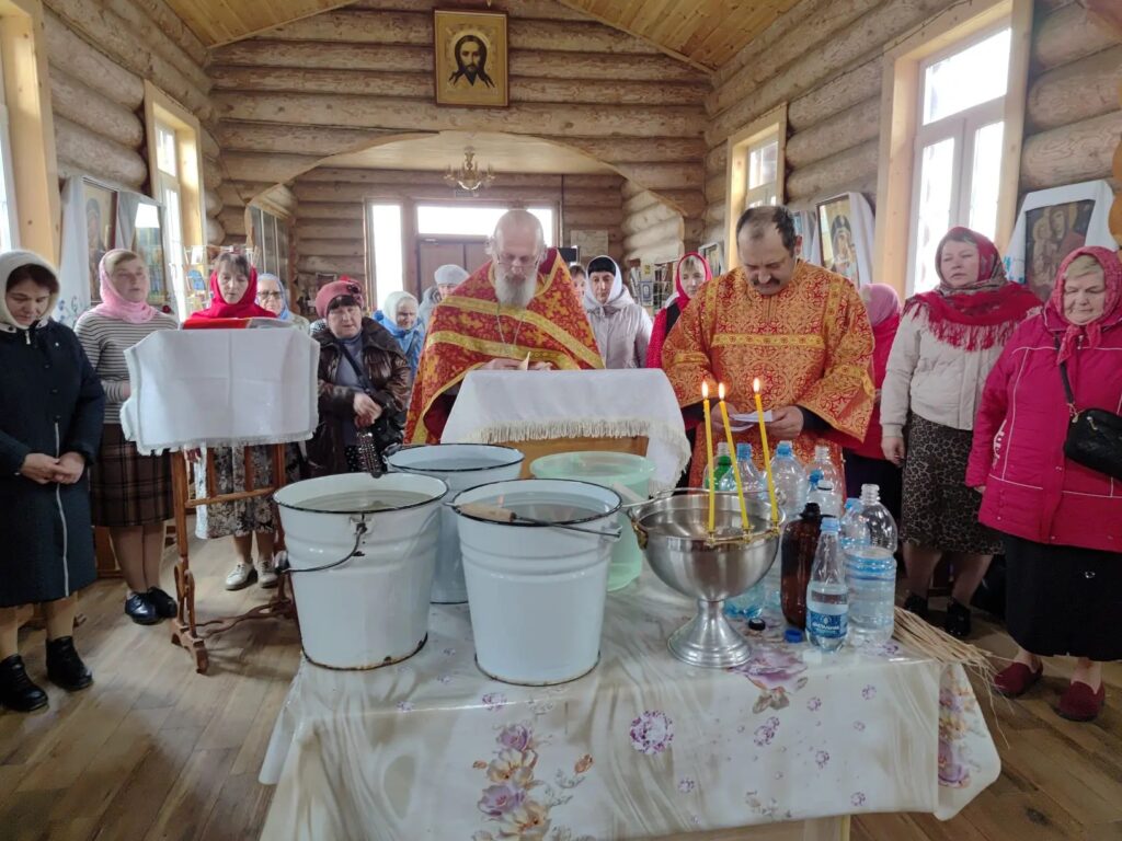 После чего состоялось освящение воды. Иерей Игорь Прокопкин совершил чин великого водоосвящения, призывая благодать Святого Духа на воду, чтобы она стала источником исцеления для всех, кто с верой будет её принимать.