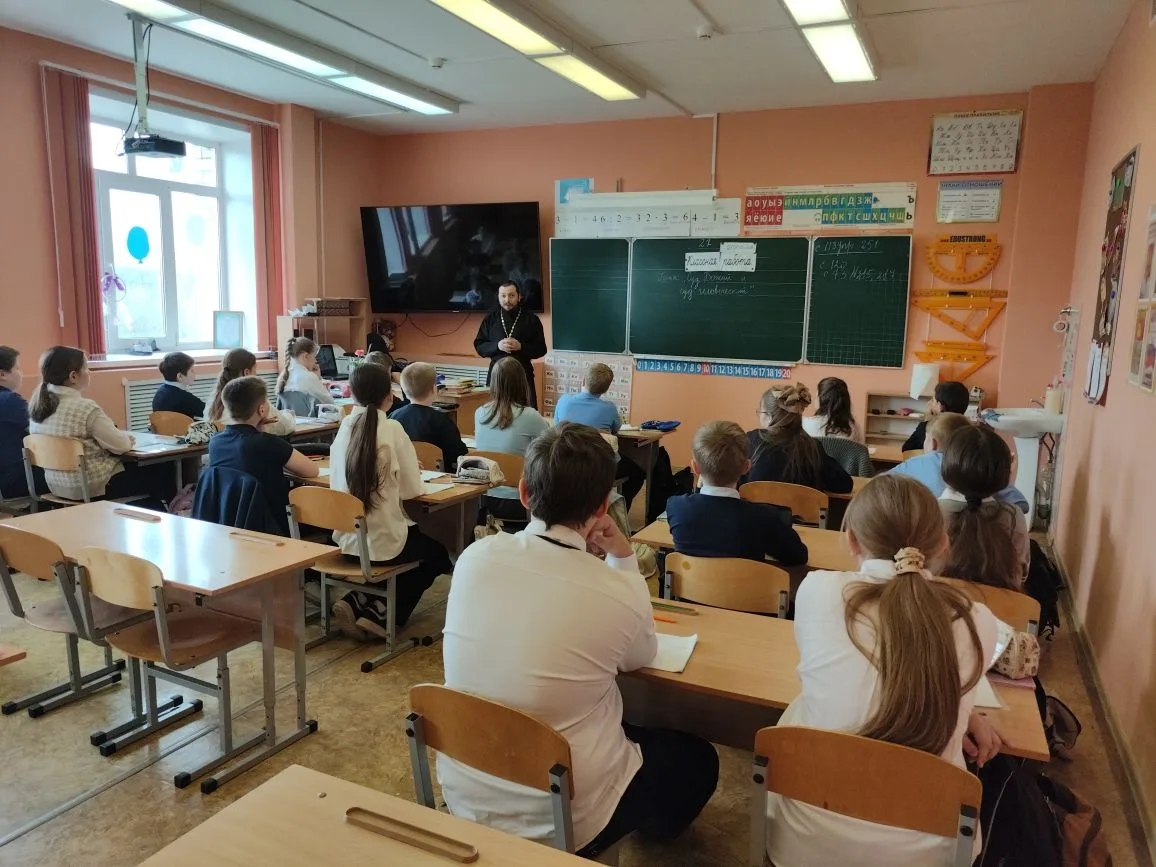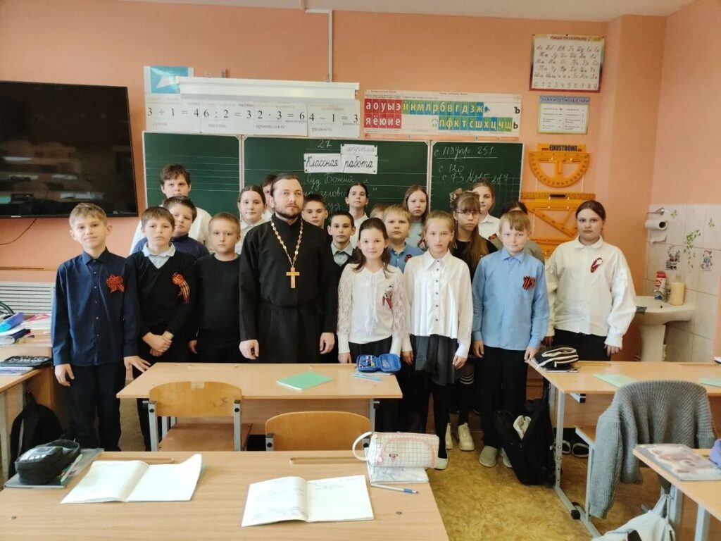 Завершился урок совместным фото. По окончании занятия отец Олег и учитель ОПК Наумцева Оксана Владимировна договорились о проведении экскурсии в храме для учеников 4 «А» и «Б» классов.